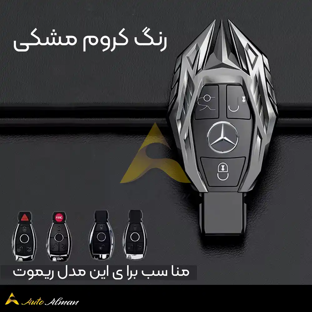 کاور ریموت بنز کریستال از جنس فلز مقاوم و با کیفیت ساخته شده که دوام و استحکام بالایی را برای ریموت شما فراهم میکند. این کاور در دو رنگ زیبا و جذاب آبکاری شده؛ کروم براق و کروم مشکی، که هر کدام ظاهری مدرن و لوکس به ریموت میبخشند.