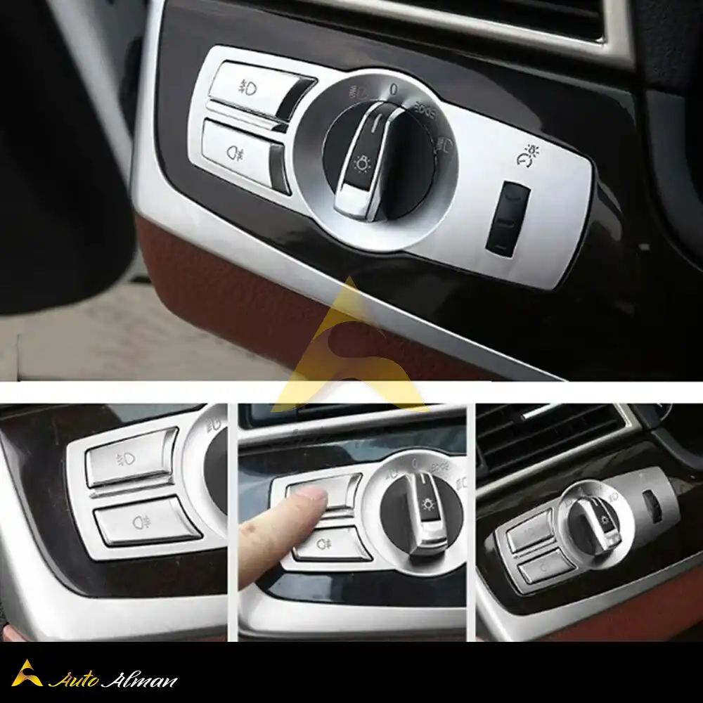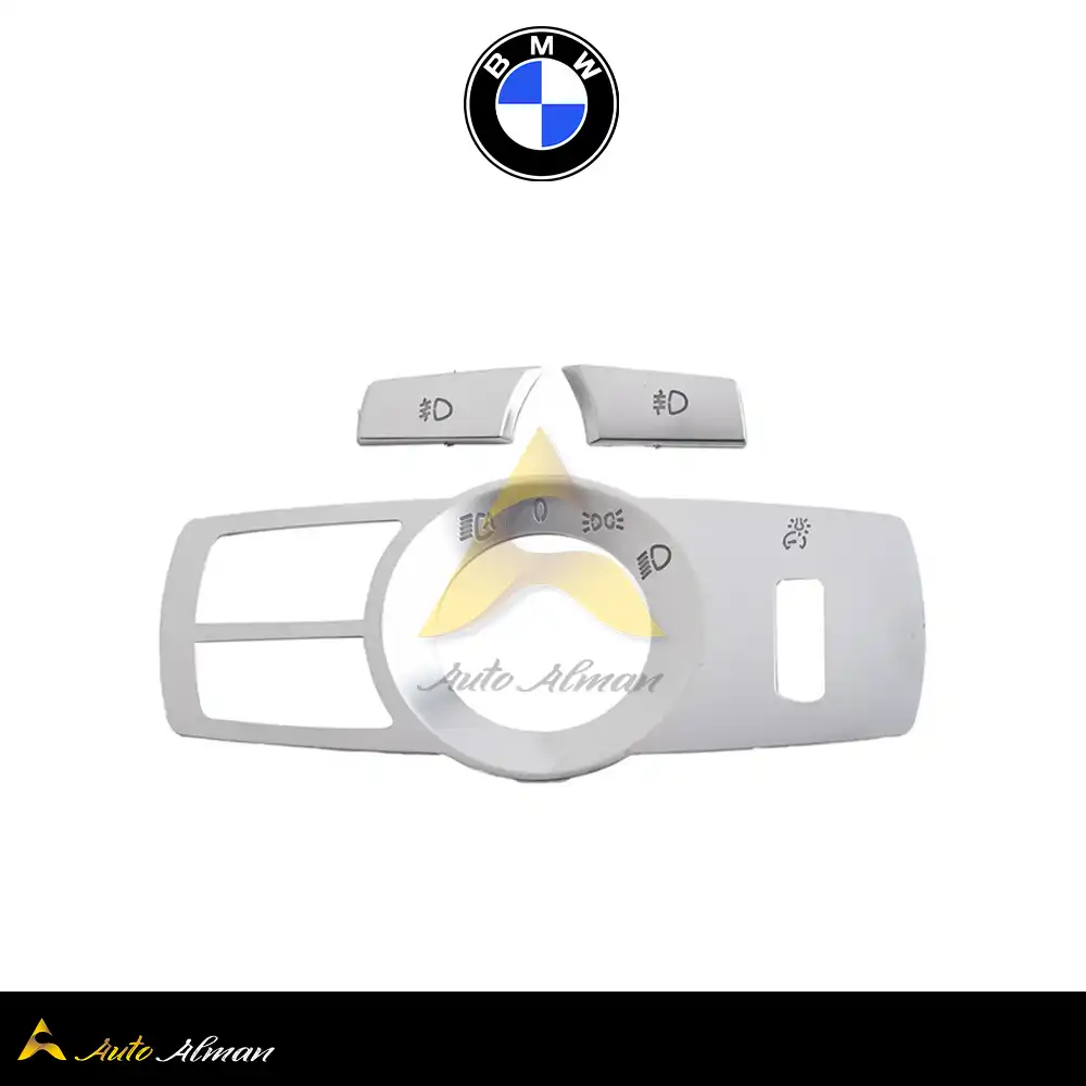 کاور پنل دکمه چراغ جلوی بی‌ام‌و | ABS کروم مات | نصب آسان با چسب ۳M | مدل‌های F07, F10, F25, F26